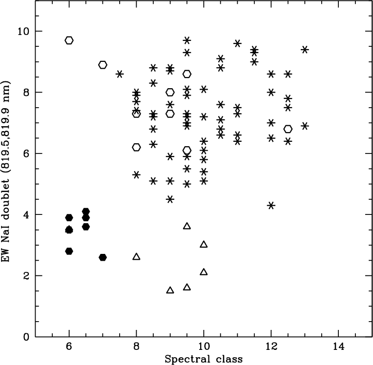 low-mass objects using the NaI doublet equivalent width is given. It is