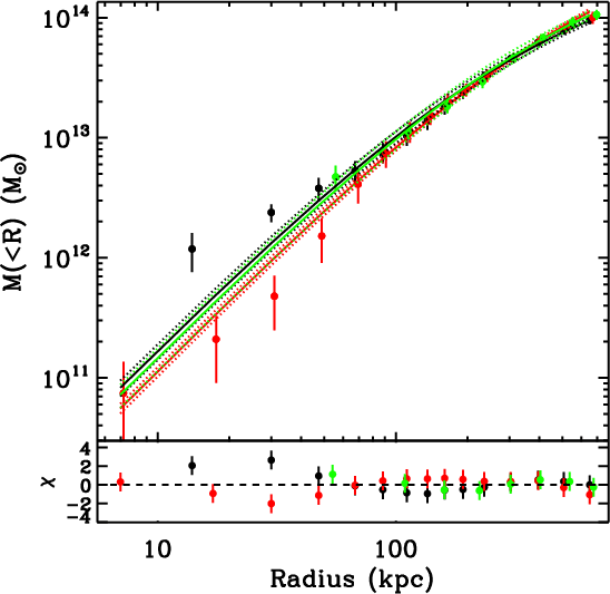 this result, Humphrey et al. (2006) examined the mass profiles of seven early type elliptical galaxies, again finding no strong evidence for adiabatic contraction.