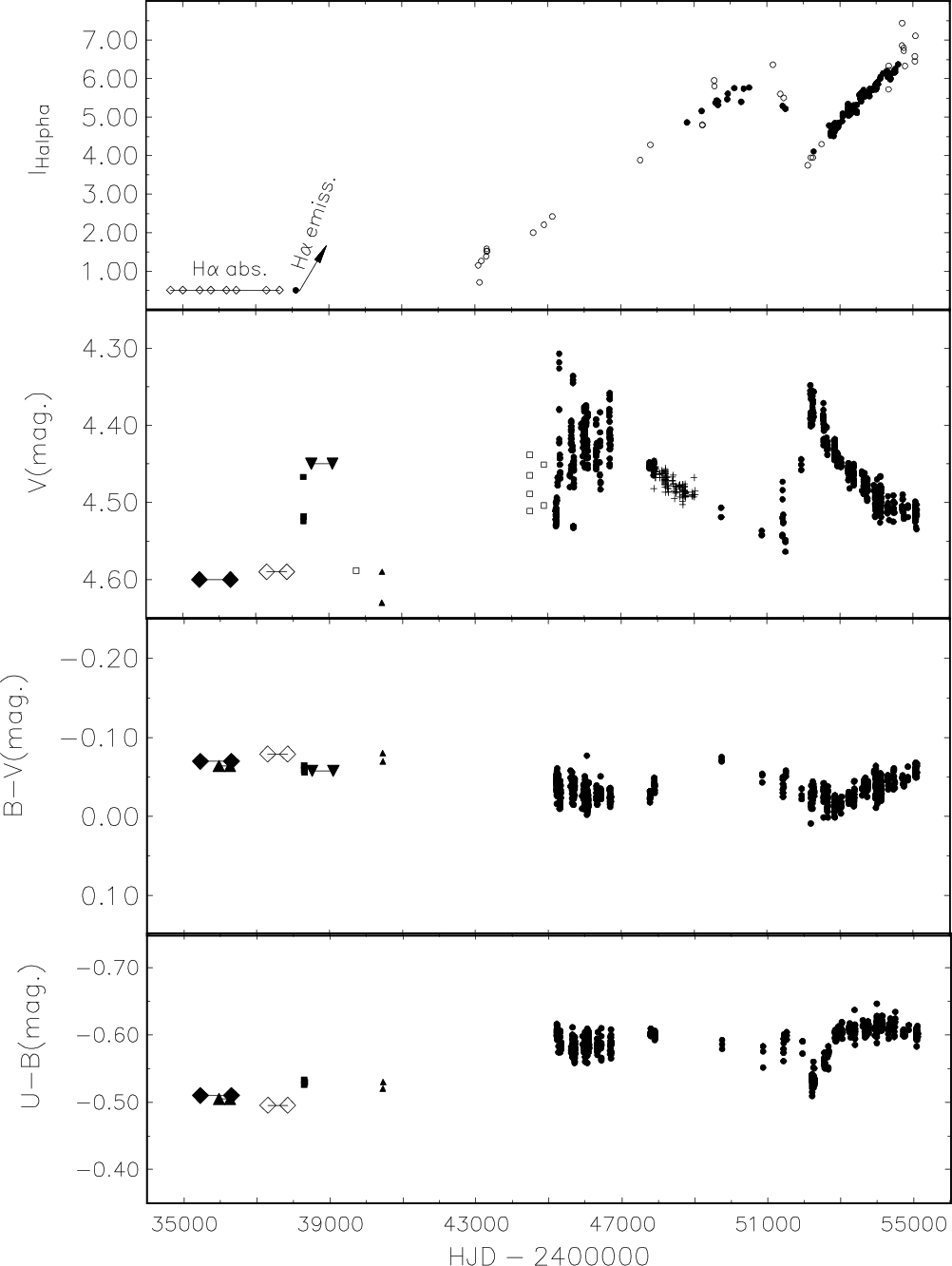 Note that for observations by Haupt & Schroll (1974) the Julian dates are only