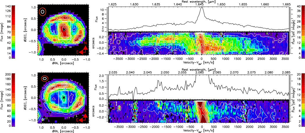 distribution of the He I and [Si I]+[Fe II] images. Helium zone