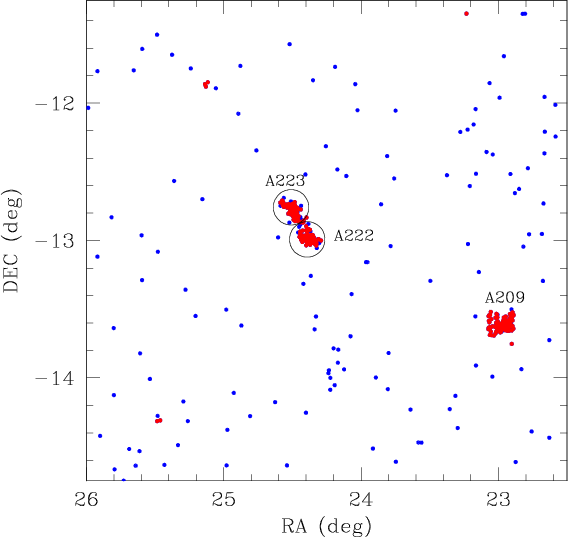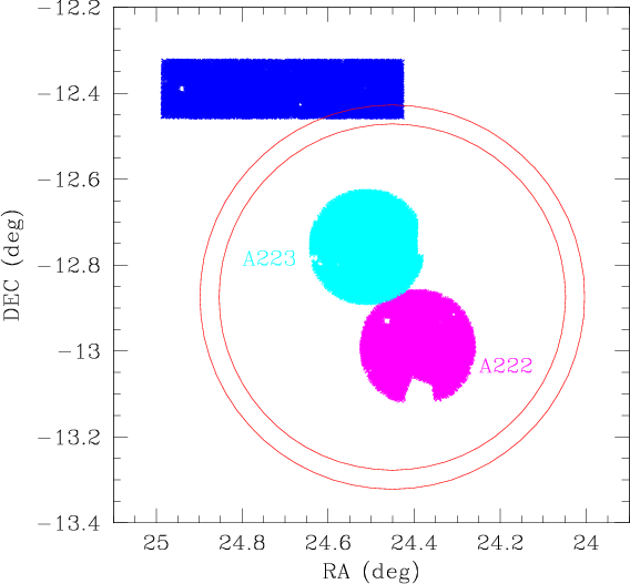 Context. The Abell 222 and 223 clusters are located at an average redshift