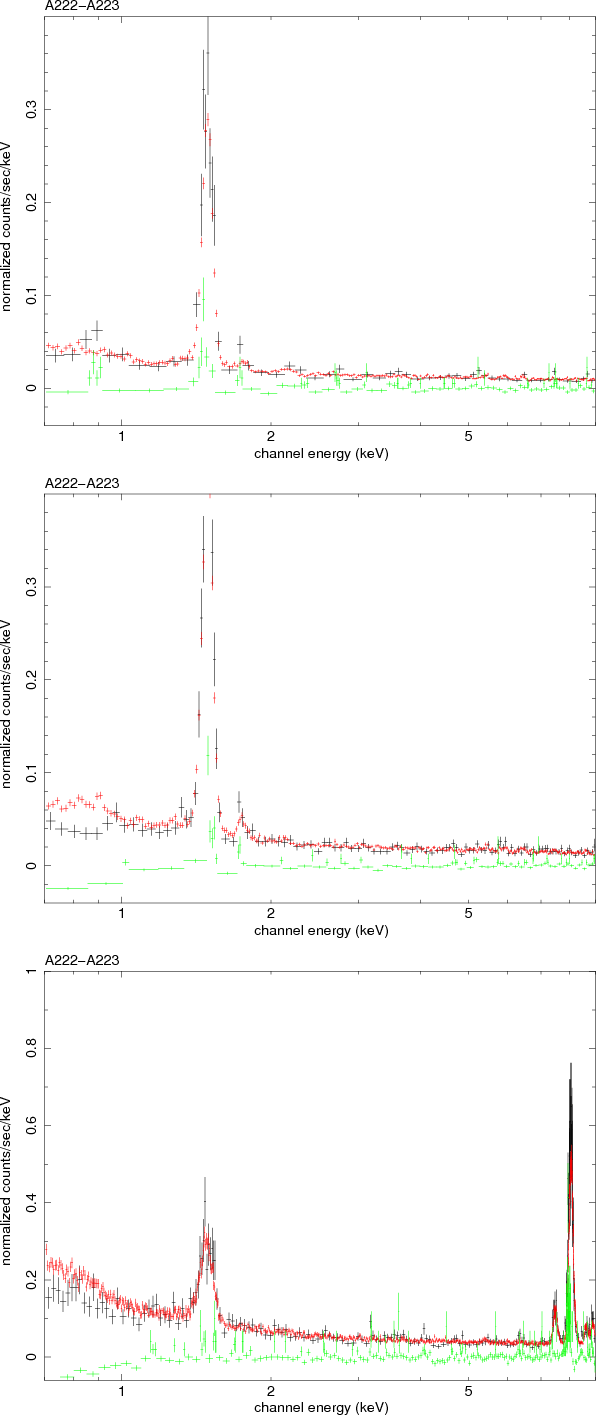 Key words: galaxies: clusters: individual: Abell 222 - X-rays: galaxies: clusters - galaxies: clusters: individual: Abell 223 - galaxies: clusters: intracluster medium