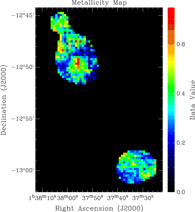 19.2 Mpc. X-ray temperature and metallicity maps reveal that the