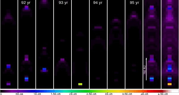 - For this reason the epoch time = 0 in Fig. 5 corresponds to 2.5 years, 10 years, and 40 years from the beginning of the simulation for run LJ0.5-M1000, LJ2-M1000, and LJ8-M1000, respectively.