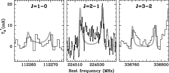 J = 1-0 rotational transition. The