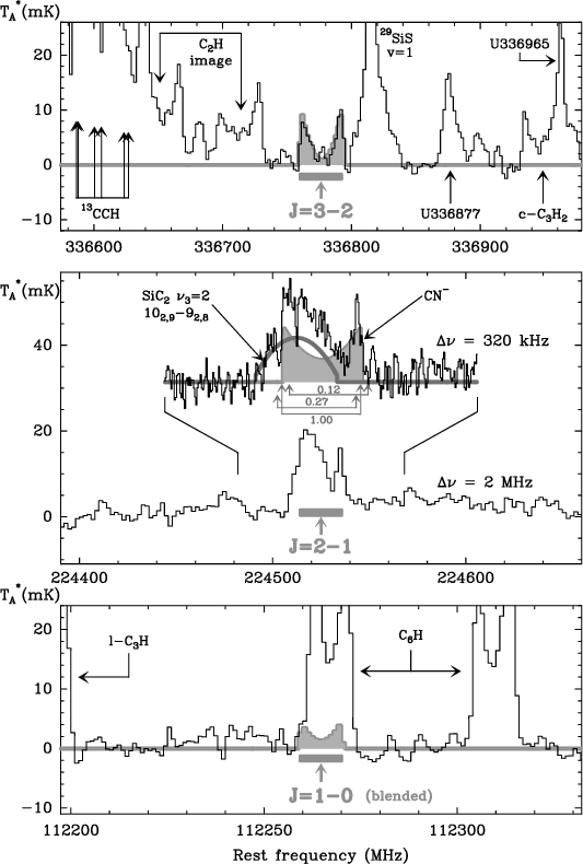 to J = 3-2transitions of CN-.
