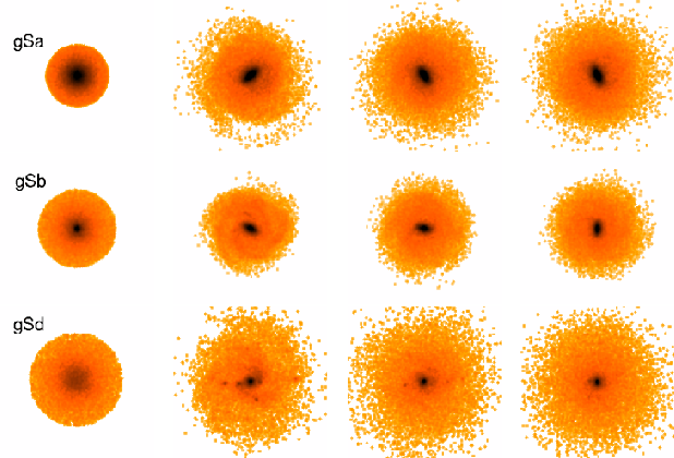 Large-scale cosmological N-body simulations (e.g., Springel et al. 2006; Ocvirk et al. 2008) often lack the spatial resolution to trace in detail star formation and morphological transformation on a galaxy scale. Therefore, they are usually complemented by semi-analytical prescriptions qualitatively accounting for phenomena strongly affecting galaxy evolution, such as star formation (e.g., Somerville et al. 2008; Blaizot et al. 2004). However, the parameters of the semi-analytical models have to be chosen based on more detailed simulations of galaxy interactions. High resolution galaxy simulations (e.g. Bournaud et al. 2008) cannot be performed in large statistical numbers. A compromise has then to be made between statistics and resolution. This becomes one of the main motivations for studying large numbers of galaxy interactions by means of dedicated intermediate-resolution numerical simulations.