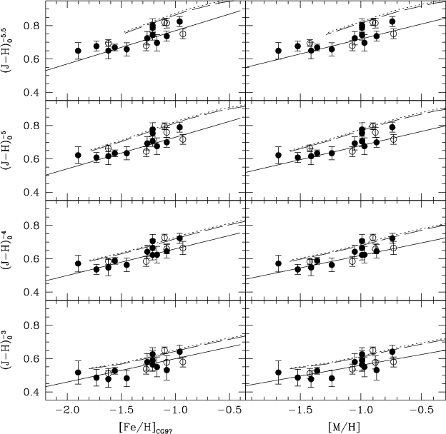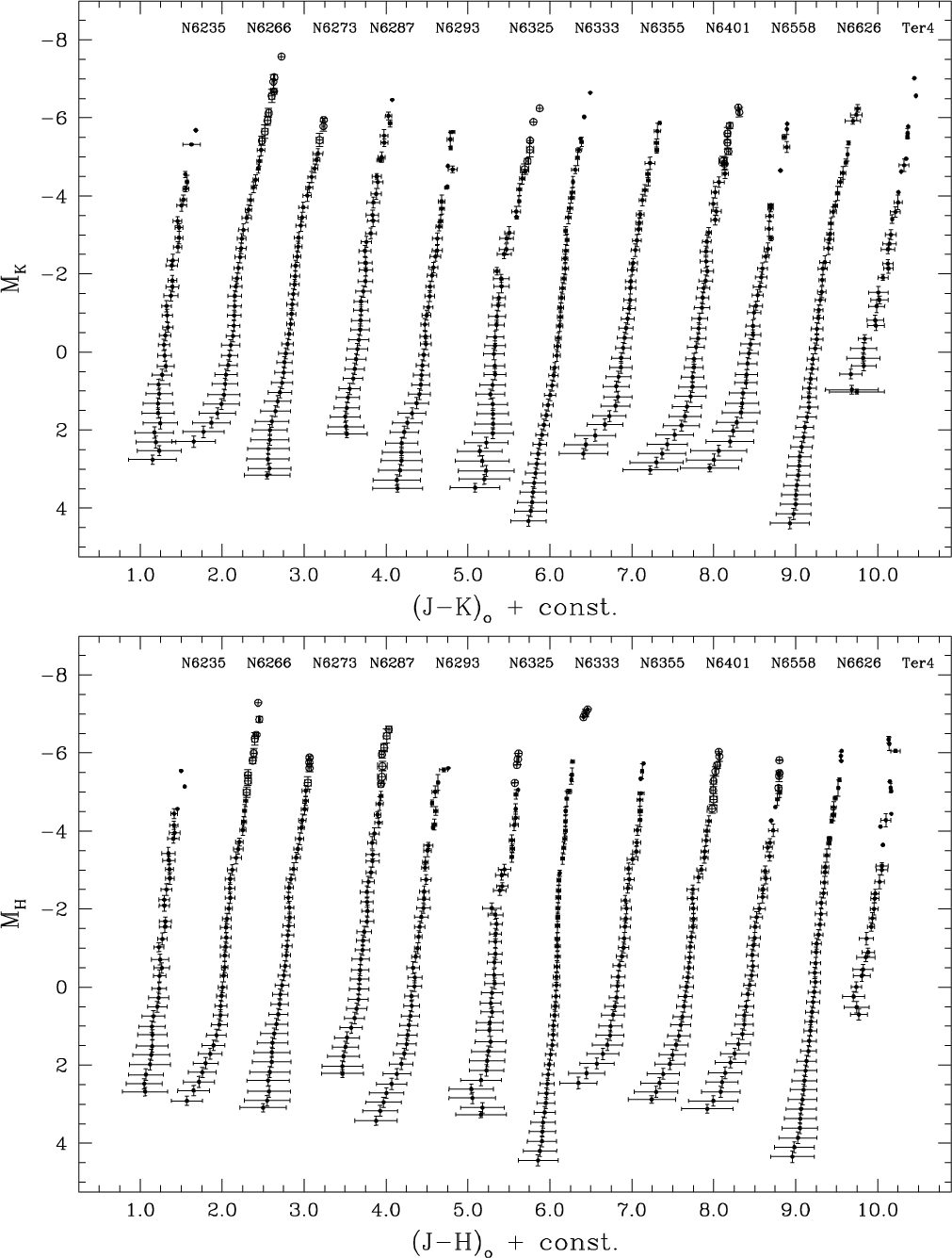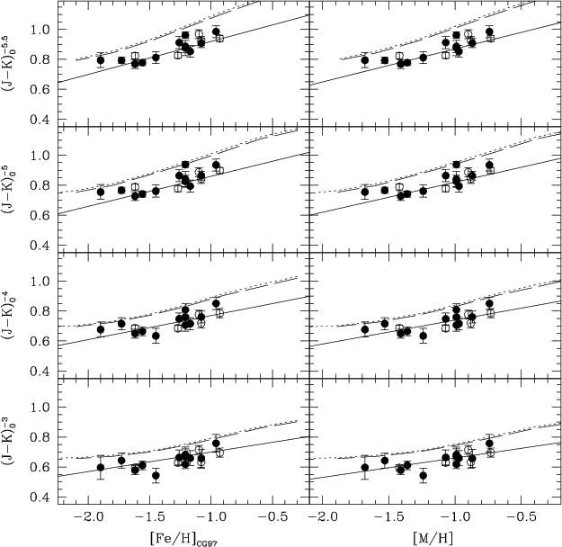 -5, -4, and -3), magnitudes at fixed colors of (J-K)o