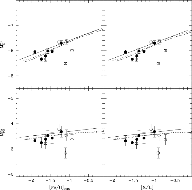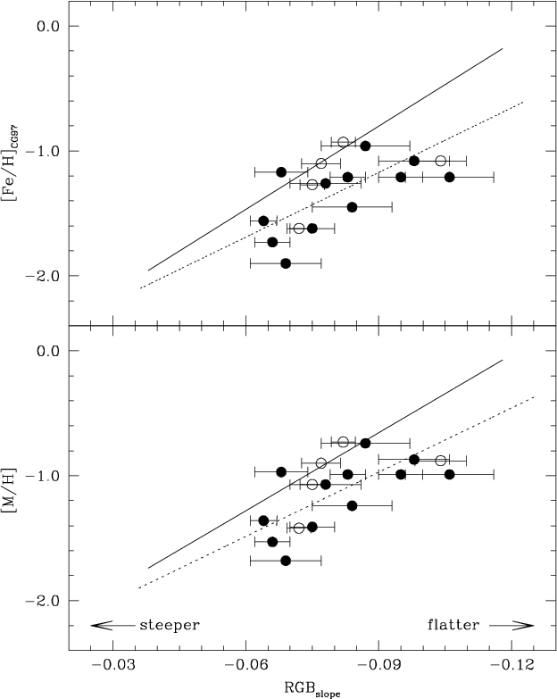 behaviors of the RGB morphology as a function of cluster metallicity.