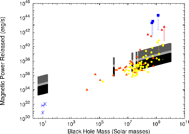 - We notice that these correlations are often interpreted in the context of (advection dominated accretion flow) ADAF models where a geometrically thick and optically thin accretion disk with small mass flow rate is invoked to explain the low/hard X-ray emission accompanied by radio jet activity. In these models a geometrically thin disk structure in the inner region would be recovered when the system switches to a high-accretion flow rate, hence producing a high/soft emission with suppression of the jet activity. In the present model we examine these objects mostly during their outburst phases rather than during their more quiescent states. Besides, because the reconnection mechanism is operating at the interface region between the inner disk and the central source, the choice of a geometrically thin accretion disk (rather than a thick one) is not a crucial point for our model.