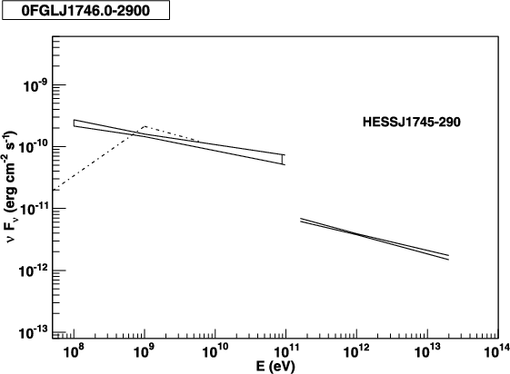 \end{figure}](/articles/aa/full_html/2010/10/aa13717-09/Timg51.png)  | Figure 9: MeV to TeV spectrum of the Galactic center. The VHE spectrum is taken from Aharonian et al. (2006h) while the broken power-law spectrum (dashed-dotted line) derived for 3EG J1746-2851 is taken from Bertsch et al. (2000). |