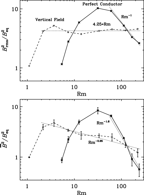 that the magnetic Reynolds numbers in our simulations are still not