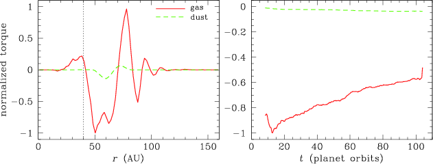 protoplanetary disk with a planet on a fixed circular orbit at 40 AU to