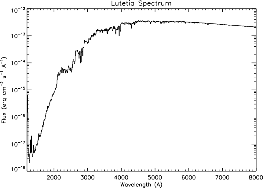 distribution of Lutetia over the wavelength range 1200-8000 Å.