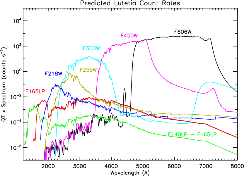 We thank the STScI Director, Matt Mountain, for granting us discretionary observing time for the HST Lutetia observations. We thank the STScI ground system personnel, and especially Alison Vick, for successfully planning and executing the observations. We gratefully acknowledge Jennifer Mack and John Biretta for discussions on ``red leaks'' and for providing the best available ACS/SBC and WFPC2 system throughputs. We thank the other members of the Merline-Drummond ground-based observing team, particularly Al Conrad and Benoît Carry, for providing results on the size and shape of Lutetia prior to publication. The comments of an anonymous reviewer were helpful and have led to several improvements in the paper.