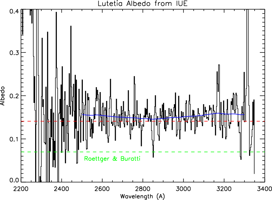 3000 Å. Nevertheless, the far ultraviolet albedo of Lutetia (