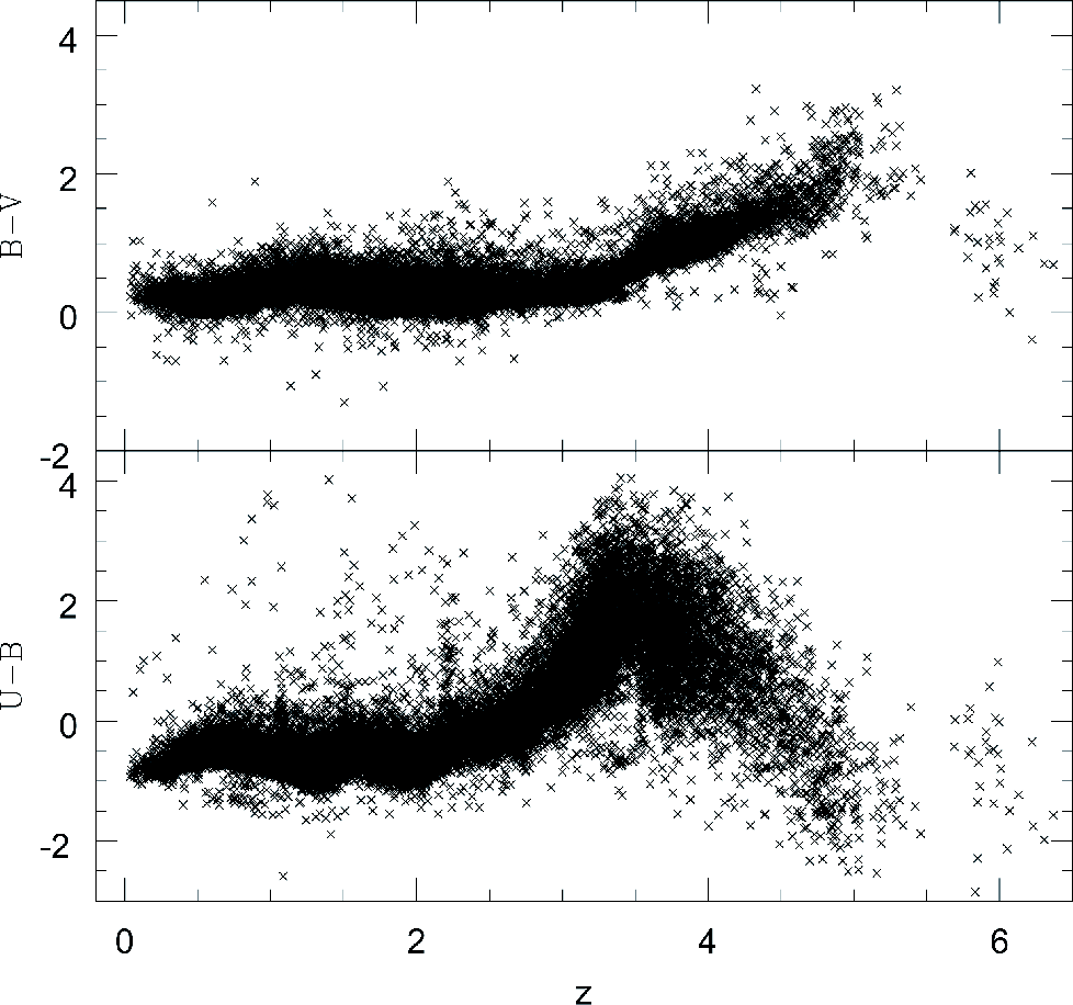 - These relationships were derived for QSOs with z<2.1. For higher redshift objects, the uncertainties on the computed colours are expected to be larger.