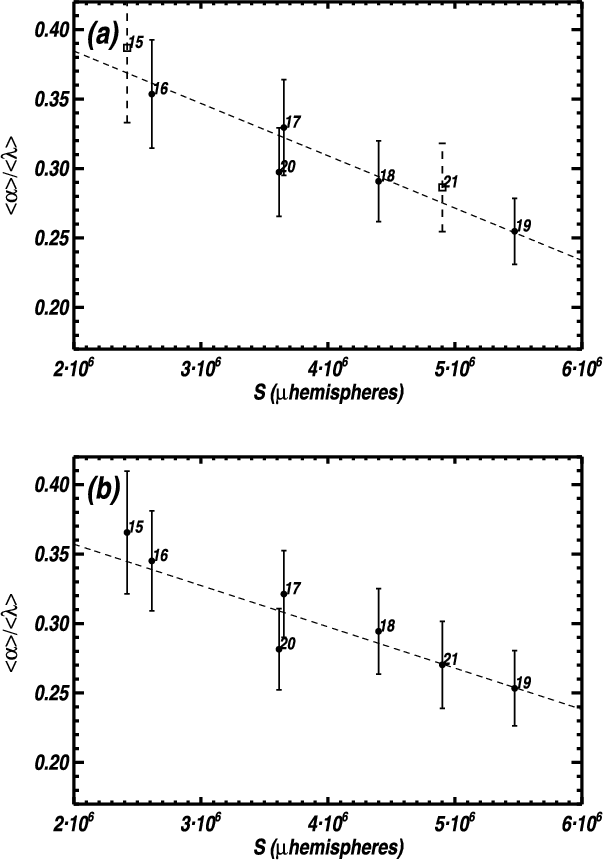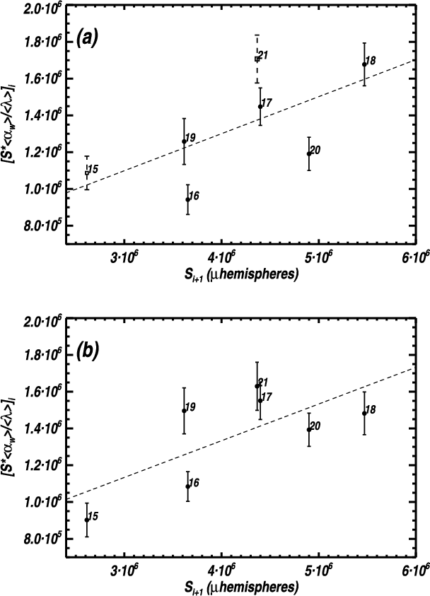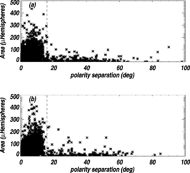 As has been mentioned, the tilt angles of individual active regions are largely random, with Joy's law being a relatively small bias. The purpose of this appendix is to discuss the calculation of cycle-to-cycle changes in Joy's law from the data. For this purpose we will assume that Joy's law applies for each cycle and that the scatter in the data is random and unbiased. More explicitly we assume