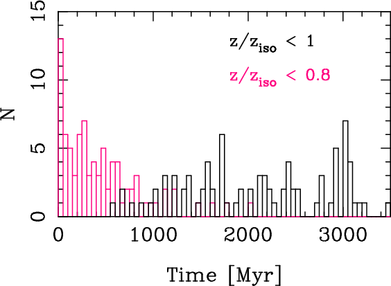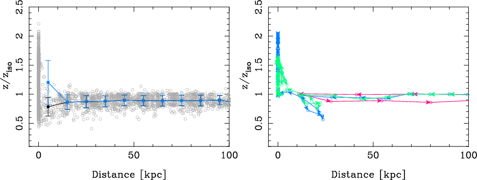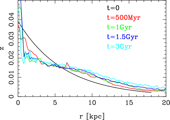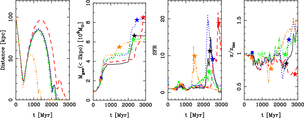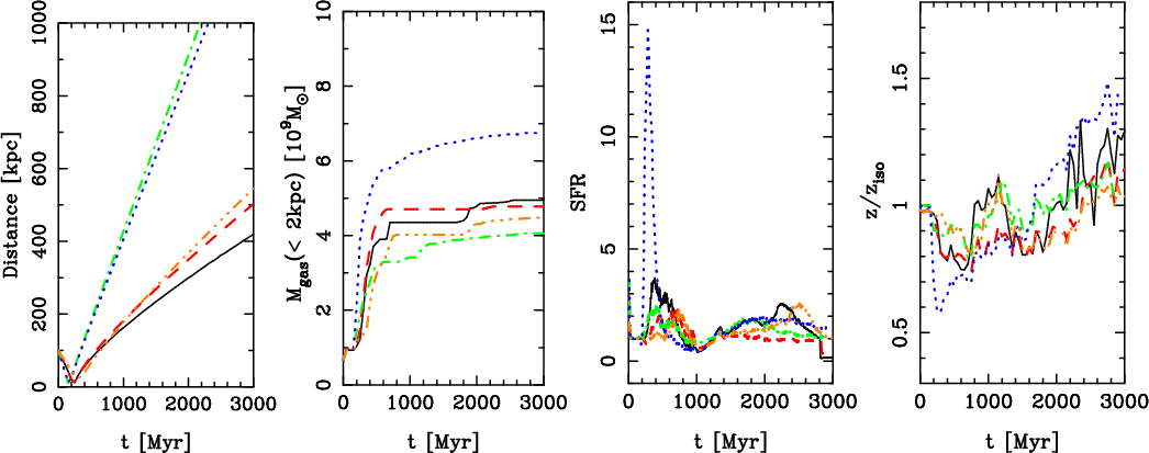 metallicities are seen generally after the first pericentre passage.
