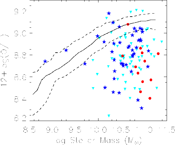 and high-mass, low-metallicity outliers from the mass-metallicity