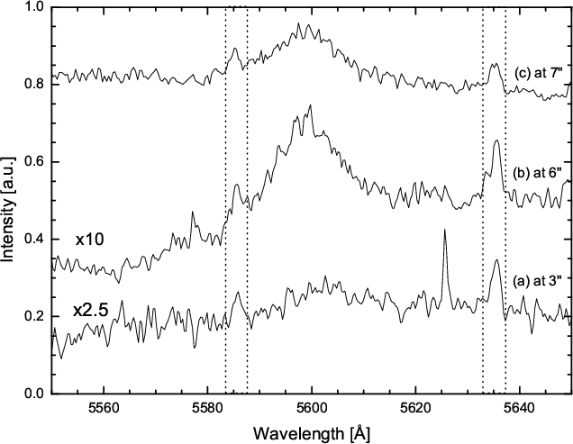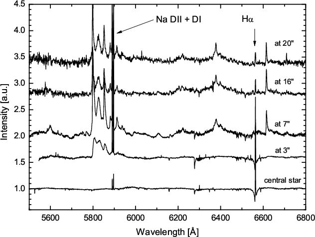 with the EMMI-NTT at offsets of 3'', 6'', 7'', 11'', 16'' and 20''