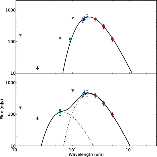We performed aperture photometry on the IR and submm images from ISO, Spitzer and SPIRE. The datasets were wcs-aligned, and smoothed to the 160It is interesting to ask what is responsible for heating the dust and