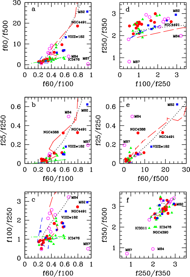0.1) because of their interaction with the cluster environment (e.g., Boselli & Gavazzi 2006). An opposite behaviour of the f60/f100 and f350/f500 colour