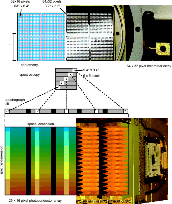 It employs two Ge:Ga photoconductor arrays (stressed and