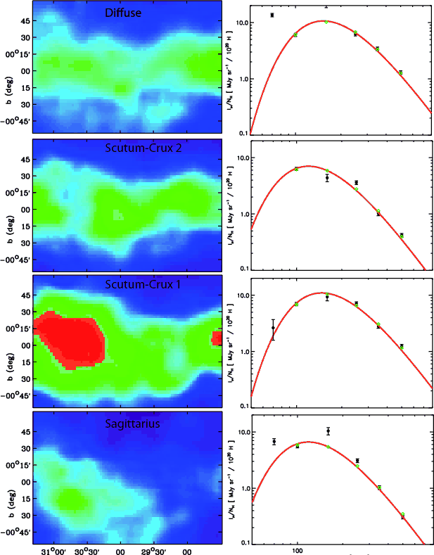 warmest dust along the LOS is located in the spiral arms of the Galaxy,