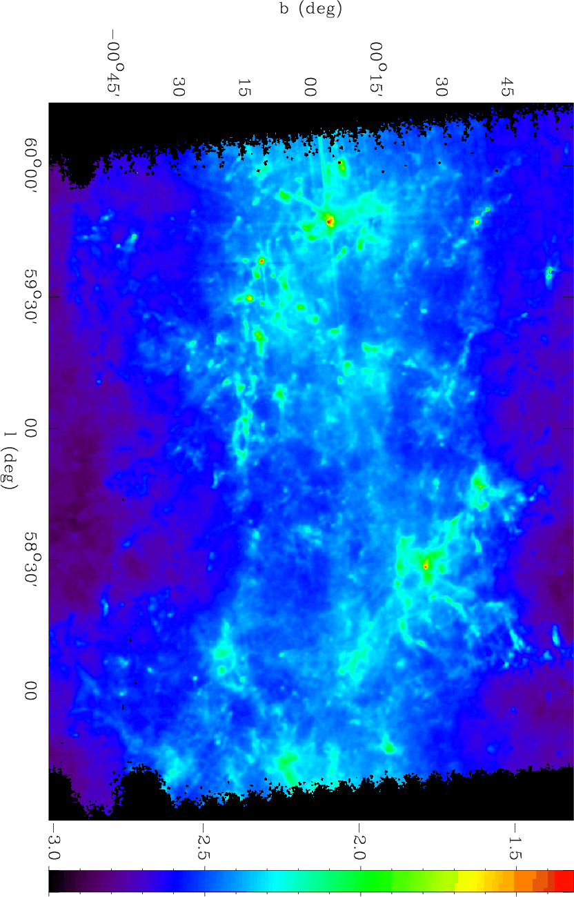 plane, obtained as part of the Hi-GAL survey during the Herschel