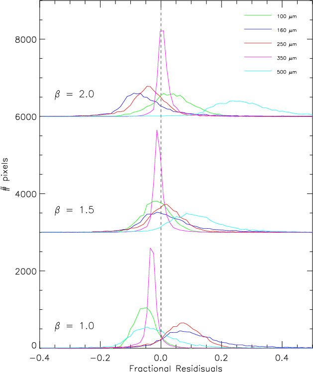 Aims. We investigate the differences in the fitted dust temperatures and masses determined using only <200