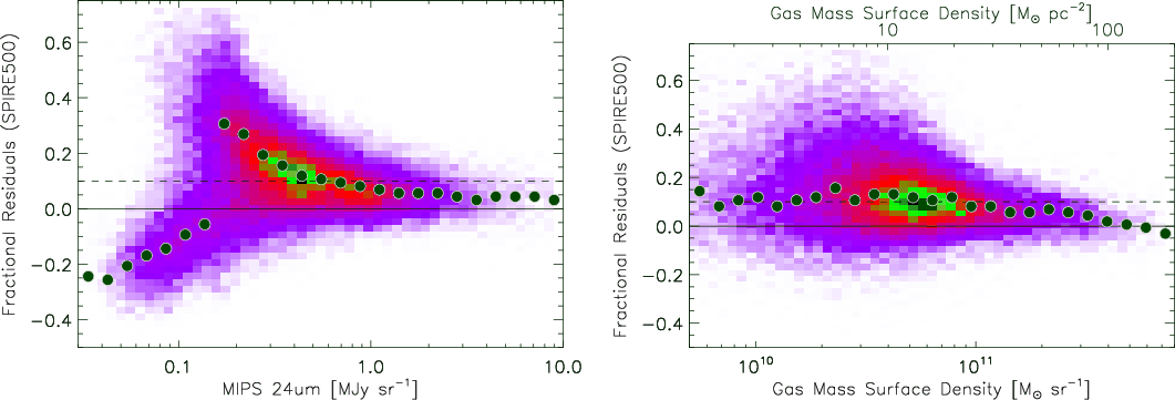 m flux and the total gas surface density. This argues against a flux calibration error as the origin of the 500
