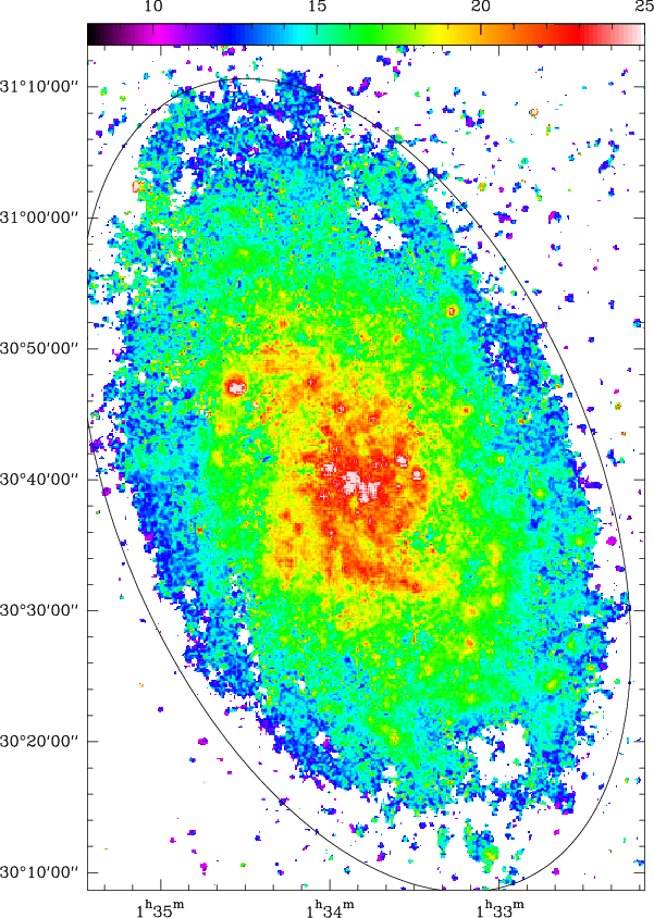 Dust color temperature map of M 33 calculated from the SPIRE 250 and 350 |