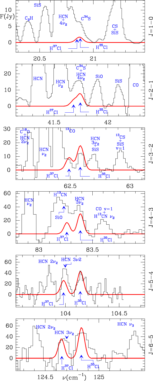 providing only upper limits to the intensity of the H37Cl isotopomer.