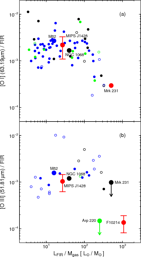 detection in MIPS J1428 we can for the first time combine [O I],