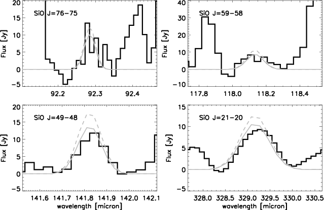 envelope, are not accesible to PACS and SPIRE. Since the high-J lines in the ground-state and the v=1 lines