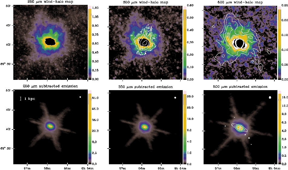 and derive spatially-resolved far-infrared colors for the wind and halo. We interpret the