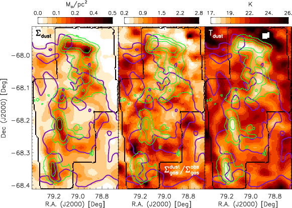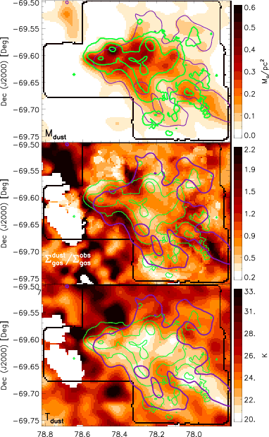 so-called ``FIR excess'', implying X factors 3-6 (LMC) and 20-60 (SMC) times higher than in the solar neighborhood (Leroy et al. 2009,2007; Israel 1997; Bernard et al. 2008). Their analysis assumes that dust grain emissivity and gas-to-dust