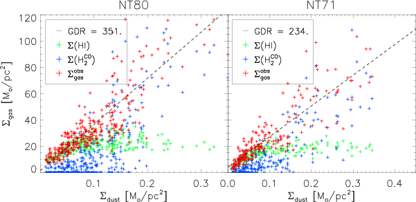 emissivity and gas-to-dust ratio in NT71 and NT80 are constant with