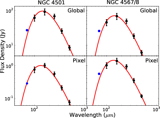 sample. For NGC 4501 and NGC 4567/8, we find global dust