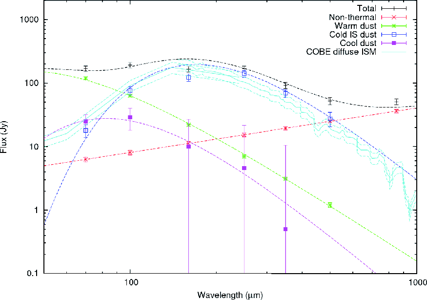 contributions from the nonthermal, warm dust and cold interstellar dust