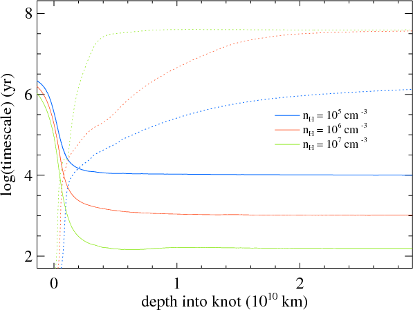 the recombining gas are proposed as a mechanism for forming the knots. H2 formation
