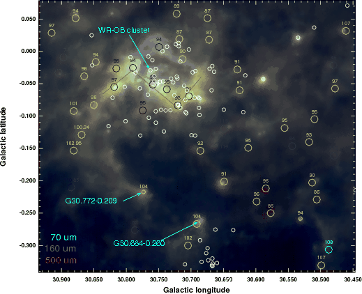 (Lester 1985). Motte et al. (2003) identified about 50 clumps with masses ranging from 40 to 4000