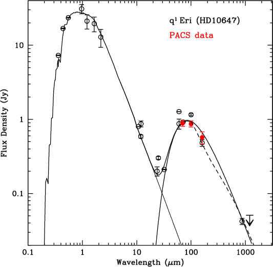 Results. For the first time has the q1 Eri disc been resolved at far infrared wavelengths. The PACS observations at 70