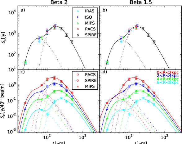 fixed at 1.5, best fits the global and the radial SEDs. The cold dust