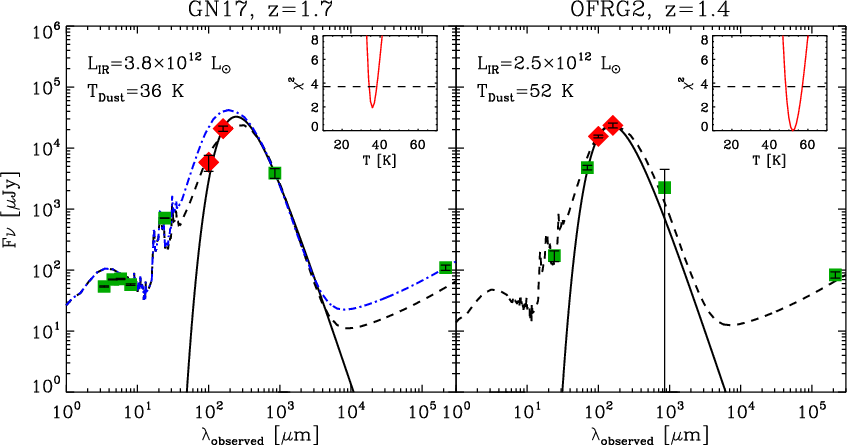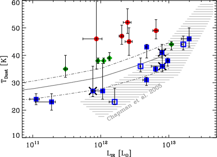 In particular, Chapman et al. (2005, ApJ, 622, 772) found a dust temperature of