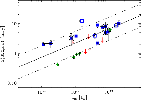 Then, using the Dale & Helou SED templates normalized to these infrared luminosities, we can fit their 850