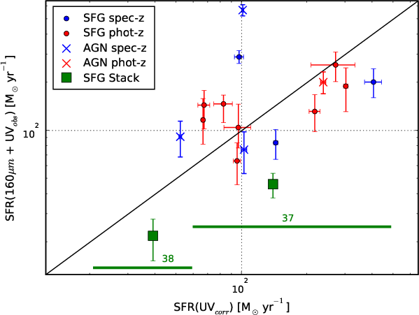 excess. The UV SFRs are in closer agreement with the FIR-based