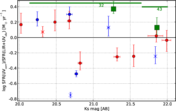 The previous UV SFRs are thus confirmed and the mean excess, while