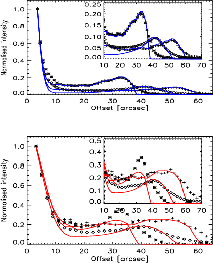 with shell 3 as seen by Gonzàlez Delgado et al. (2001) and Maercker et al. (2010), a result that they attribute to gas. We neither see nor resolve another shell at the position of shell 4.